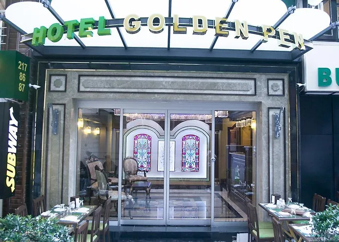Featuring currency exchange and a lift, the 3-star Golden Pen Hotel Istanbul stands nearly a 25-minute walk from the restored Baroque Revival Ortakoy Mosque. The hotel includes a clock tower in its decor and such practical amenities as a private parking lot.